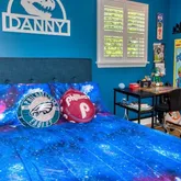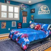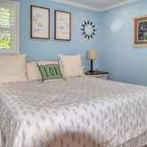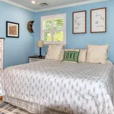 - House Color: Blue with brick trim