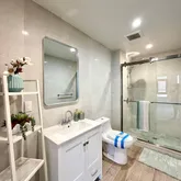 • Elegant bathrooms with glass-enclosed showers