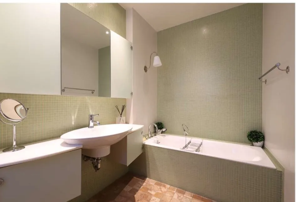 -Marble and tiled updated bathrooms with windows, Toto, Villeroy & Boch fixtures