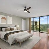 - Room Description: The luxurious primary bedroom features a private terrace with stunning views of Lady Bird Lake, elegant wood flooring, and a ceiling fan for added comfort and ambiance. It also boasts three large closets, including a spacious walk-in closet, providing ample storage space for your convenience.