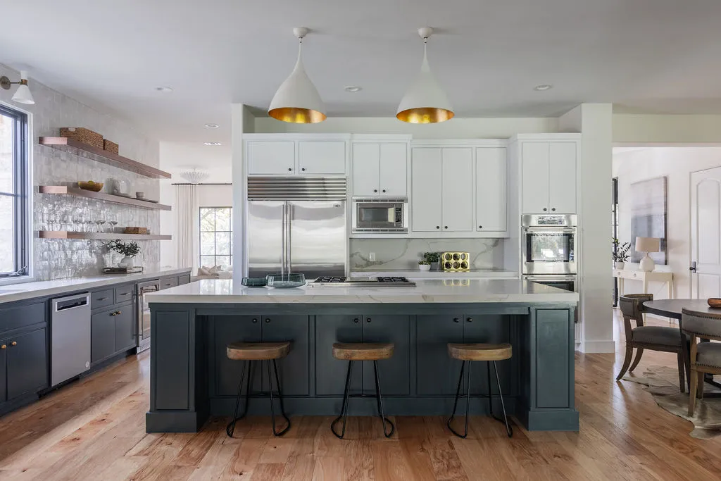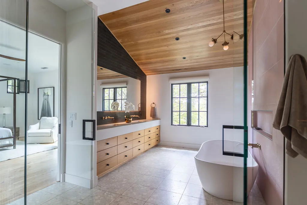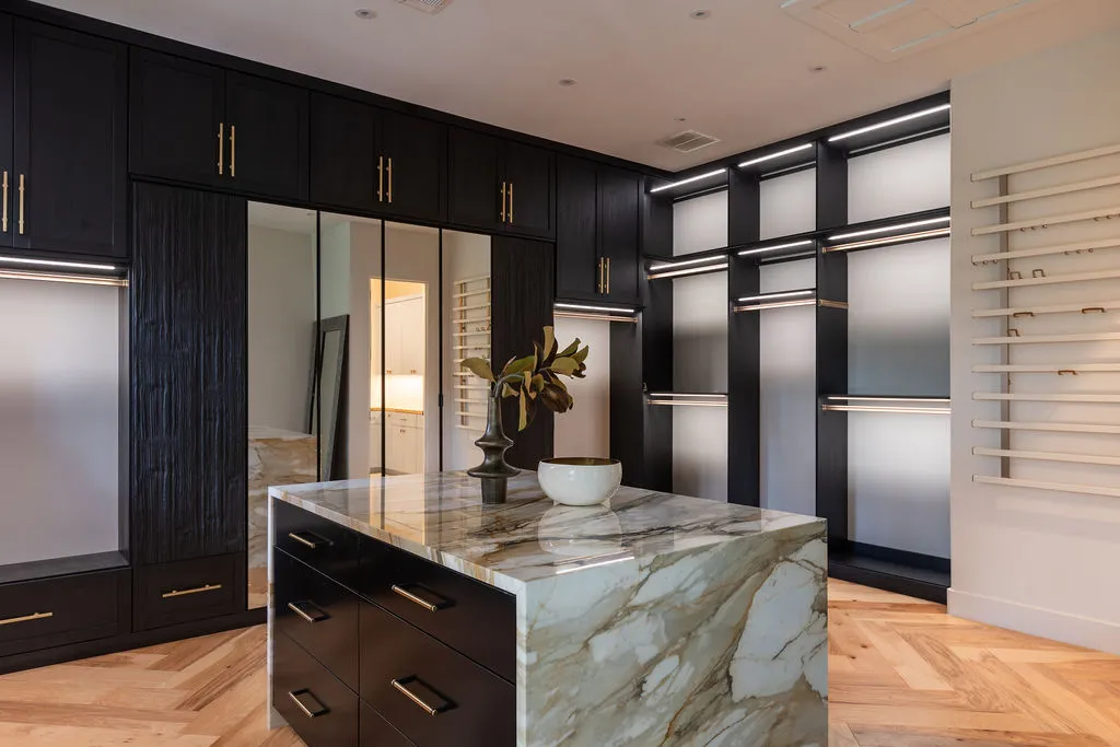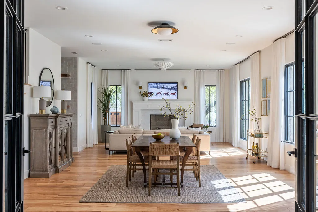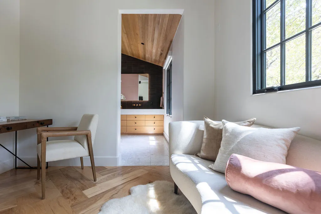The primary suite offers a tranquil retreat with a spa-like bathroom, a dedicated workout or reading room, and an oversized walk-in closet. Every detail has been carefully considered, from the custom curtains to the elegant House of Hackney wallpaper. Additional conveniences include a full laundry room on the main level, a second laundry area tucked away in the primary closet, and an oversized garage.