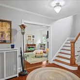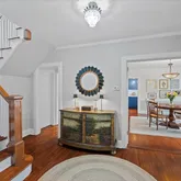 The main level features an airy living room with a gas fireplace, a versatile den/home office, a formal dining room, and kitchen with stainless-steel appliances and a durable quartz countertops, pantry, and powder room. A special feature includes a separate...Welcome home to Pelham Manor, this classic center-hall home offers beautiful hardwood floors throughout, spacious well-proportioned rooms, and private guest/au pair suite, private patio--perfect for quiet relaxation or entertaining and side yard,