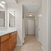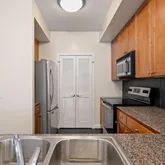 This spacious 1 bedroom, 1 bathroom condo offers nearly 900 sq ft of modern comfort in one of DC’s most vibrant and walkable neighborhoods. The residence showcases soaring 9-foot ceilings, gleaming hardwood floors, and an open-concept layout filled with natural light. The bedroom is a true retreat, featuring an en suite bathroom for comfort and privacy, along with two custom closet systems that provide abundant storage. A thoughtfully designed nook with a custom built-in desk and shelving offers the perfect home office setup or can easily transform into a cozy reading lounge — flexible to suit your lifestyle. Combo box at front desk