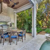 - Exterior Features: Auto Sprinkler, Built-in Grill, Covered Balcony, Covered Patio, Custom Lighting, Open Balcony, Open Patio, Outdoor Shower, Screen Porch, Summer Kitchen