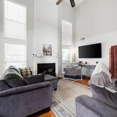 fireplace-perfect for gatherings. The kitchen offers stainless steel appliances, tile flooring, pantry storage, and a breakfast