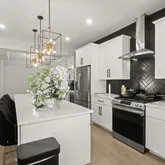 - Room Features: Breakfast Nook, Countertop(s) - Quartz, Dining Area, Double Sink, Flooring - HardWood, Island, Kitchen - Gas Cooking, Pantry