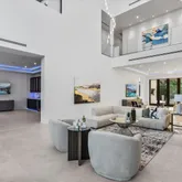 A soaring 32-foot entry creates a striking first impression, opening to expansive open-concept interiors designed for both elevated living and effortless entertaining. At the center of the home, the chef’s kitchen features Sub-Zero and Wolf appliances and anchors the main living space with purpose and style. The first-floor primary suite is a private retreat, offering tranquility and separation from the home’s social spaces. An entertainment lounge with full bar adds another layer of sophistication for hosting at the highest level.