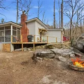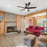 - Add endum: The creek is the heart of this property. A large, flowing creek runs directly behind the home, close enough to hear at all times, creating a peaceful, serene setting that feels like a true escape. Step out onto the deck and relax to the constant sound of moving water—this is the kind of feature you simply don’t see often and can’t replicate. The cozy 2-bedroom, 2-bath home is tucked into a quiet, wooded setting and offers a warm wood interior with an open, inviting living space. Recent updates include a new roof and HVAC in 2025. The property is on well and septic, with no HOA and no restrictions, making it ideal for a short-term rental, weekend getaway, or full-time retreat. One-of-a-kind properties like this are rare, and this setting truly sets it apart.
