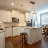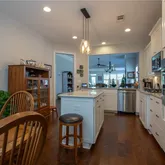- Kitchen Features: Cabinets White, Kitchen Island, Pantry, Stone Counters, View to Family Room