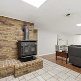 - Fireplace Features: Brick, Wood Burning