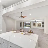 - Interior Features: Attic Fan, High Ceilings, Kitchen/Family Room Combo, Living Room/Dining Room Combo, Open Floorplan, Primary Bedroom Main Floor, Solid Wood Cabinets, Split Bedroom, Stone Counters, Walk-In Closet(s), Window Treatments