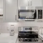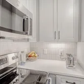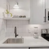 - Room Description: quart countertops with tile backsplash