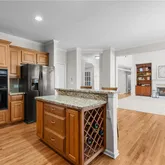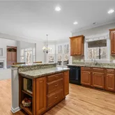 - Kitchen Features: Cabinets Stain, Pantry, Stone Counters, View to Family Room
