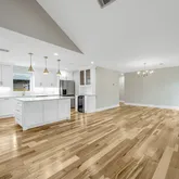 - Interior Features: Breakfast Bar, Crown Molding, Dry Bar, Double Vanity, Entrance Foyer, High Ceilings, Kitchen Island, Kitchen Family Room Combo, Bath In Primary Bedroom, Pots And Pan Drawers, Pantry, Quartz Counters, Self Closing Cabinet Doors, Self Closing Drawers, Tub Shower, Vaulted Ceilings, Ceiling Fans, Kitchen/Dining Combo, Living/Dining Combo, Programmable Thermostat
