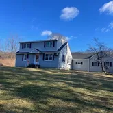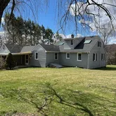 - Internet Remarks: Welcome to Stonetown! Tucked back from the road and set on over 1.7 acres, this charming expanded Cape Cod offers the perfect blend of privacy and comfort. Inside, you'll find a well-appointed eat-in kitchen, a cozy office nook, and a stunning great room featuring cathedral ceilings, skylights, and a wood-burning stove perfect for gathering year-round. The main level also hosts a spacious primary bedroom complete with a large walk-in closet, while two additional bedrooms are located upstairs. With a full bathroom on each level, the layout offers both convenience and flexibility. Freshly updated with new hardwood flooring on the first floor, new wall-to-wall carpeting on the second floor and staircase, and recently painted throughout, this home is truly move-in ready. A detached garage adds even more versatility, ideal for a workshop, storage, or your next creative space.