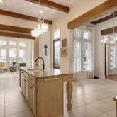 - Interior Features: High Ceilings, Beamed Ceilings, Crown Molding, Double Vanity, Kitchen Island, Multi-Head Shower, Separate Shower, Standalone Tub, Varied Ceiling Heights, Walk-In Closet(s), Granite Counters