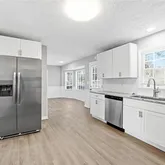 - Kitchen Features: Cabinets White, Solid Surface Counters, Eat-in Kitchen