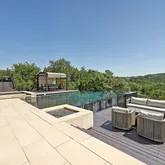 The 5,800-square-foot main residence features elegant formal living and dining rooms, a chef’s kitchen with breakfast room overlooking a serene courtyard, and a grand family room that flows effortlessly to the backyard retreat. A negative-edge pool, multiple covered terraces, and panoramic Hill Country views set the stage for unforgettable entertaining and fun. The owner’s suite and dedicated office are located on the main level, while the upstairs level can function as its own private four bedroom retreat, with three full bathrooms, a large kitchen, dining and living space as well as a beautiful covered terrace to take in the hill country views.