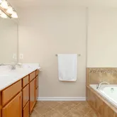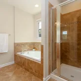 - Luxurious master suite with walk-in closet and spa-like ensuite: double sinks, soaking tub, and separate shower