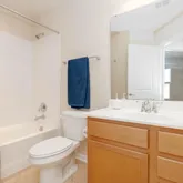 - Hall bath with tub/shower combo and crisp white tile surround