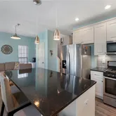 - Kitchen Features: Breakfast Bar, Cabinets White, Eat-in Kitchen, Kitchen Island, Stone Counters