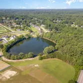 - Lot Features: Cleared, Few Trees, Hardwood Trees, Level, Open Lot, Private, Pond on Lot, Driveway