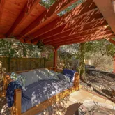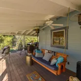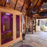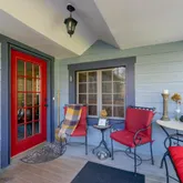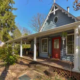 Walk into the inviting foyer, the main level offers a large primary suite with electric fireplace/walk-in-closet/and ensuite bathroom, a second bedroom and bathroom with a claw...Your private oasis awaits! This beautiful renovated home offers a wrap-around porch to relax on while looking over your beautiful fenced yard with a green house, stone patio with a pergola, couch swing and fire pit, and a renovated carriage house turned office/yoga studio with a sauna, imagine what you could do with the space.