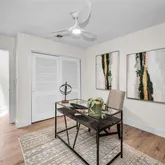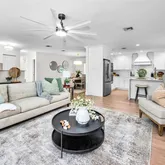 - Interior Features: Ceiling Fan(s), Crown Molding, Eating Space In Kitchen, Kitchen/Family Room Combo, Open Floorplan, Solid Surface Counters, Thermostat, Walk-In Closet(s)
