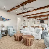 • Directions: Heading east on Hwy 395 proceed approximately four miles to the main entrance of WaterSound Beach. Proceed straight through the guard gate to the last stop sign. House is located to the left on the corner.
