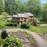 As you arrive via a private, winding lane through mature woodlands, you are greeted by curated native and natural landscaping, outlining a striking natural rock formation rising behind the home—an awe-inspiring backdrop that frames both the multi-level wrap-around deck and the bright, open interiors.