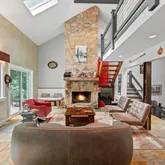 Continue upward to the main living level, where soaring ceilings and walls of glass create a bright and welcoming ambiance. The open-concept living room, dining room, and kitchen flow effortlessly together, all while overlooking the peaceful wooded backdrop. Whether preparing meals in the upgraded kitchen, dining with loved ones, or gathering by the fireplace, every space invites connection with nature and each other.