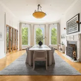 The parlor level offers a seamless flow between the elegant living room and formal dining room overlooking the Hudson River and Riverside Park. Highlights include:
