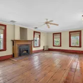 - RoomDescription 1: Spacious, original wide plank floors and working wood burning fireplace. Wide moldings for accent.