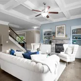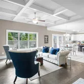 - Interior Features: Bookcases, Coffered Ceiling(s), Disappearing Attic Stairs, Double Vanity, Entrance Foyer, High Ceilings 9 ft Main, His and Hers Closets, Low Flow Plumbing Fixtures, Tray Ceiling(s), Walk-In Closet(s)