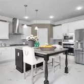 - Kitchen Features: Breakfast Bar, Cabinets White, Kitchen Island, Pantry Walk-In, Stone Counters, View to Family Room