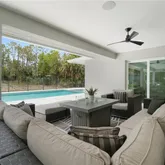 Step into a luxury estate reborn from the ground up. This 2.27-acre Collier Woods property has been meticulously reconstructed down to the block and beam in 2024—an architectural transformation that blends timeless elegance with modern innovation. Every element is brand new, from soaring 11-foot ceilings and premium insulation to state-of-the-art electrical, plumbing, and HVAC systems. Inside, craftsmanship takes center stage. The chef’s kitchen is a true showpiece with waterfall quartz countertops, custom cabinetry, a Wolf induction cooktop, Samsung appliances, and a walk-in showcase pantry that turns storage into art. The open living space is anchored by bespoke woodworking, a built-in media wall with fireplace, and seamless flow to the outdoors. The owner’s suite is a spa-worthy retreat featuring custom built-in his-and-hers closets, abundant bathroom storage, and a walk-in shower with six distinct shower head experiences. Custom closets and intelligent storage solutions throughout the home elevate both form and function. Outdoors, a modern spa-inspired patio meets a sprawling pool and jacuzzi, all set against an oversized imported Italian tile deck. Perfect for entertaining, the front patio and vast acreage offer endless possibilities for gatherings under the Florida sun. A fully detached 700 sq. ft. guest house adds unmatched flexibility—two bedrooms, one bath, and kitchen plumbing, ready to be customized with included interior design services. The front of the guest structure houses a 3-car garage, bringing total garage capacity to five, complete with an EV charging station. Additional luxury features include impact windows, a tankless water heater, and built-in indoor/outdoor speaker systems. Set on a 150-foot-wide lot surrounded by lush, mature landscaping, this estate offers complete privacy and the freedom of no HOA—an unparalleled combination of modern luxury and Naples lifestyle. Some photos include reality renovation/reality staging. This property includes interior design services, making furnishing this property easy for your buyer.