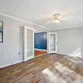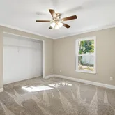 - Interior Features: Ceiling Fan(s), Crown Molding, Kitchen/Family Room Combo, Living Room/Dining Room Combo, Primary Bedroom Main Floor, Thermostat, Walk-In Closet(s)