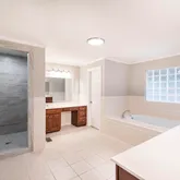 - Interior: Double Vanity, Master On Main Level, Pulldown Attic Stairs, Separate Shower, Soaking Tub, Tile Bath