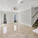 - Interior Features: Ceiling Fan(s), Crown Molding, High Ceilings, Kitchen/Family Room Combo, Living Room/Dining Room Combo, Open Floorplan, PrimaryBedroom Upstairs, Solid Surface Counters, Solid Wood Cabinets, Stone Counters, Walk-In Closet(s), Window Treatments