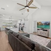 open living and dining areas create a seamless flow and inviting atmosphere. Step outside to enjoy a generous backyard