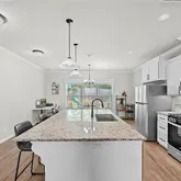 the oversized kitchen bar — providing ample counter space for meal prep, serving, or gathering with friends and family. The