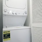 - Appliances: Washer Dryer Stacked, Dishwasher, Electric Range, Free Standing Range, Disposal, Microwave, Oven, Refrigerator, Dryer, Washer