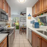 2 beautiful contemporary bathrooms Living room with great natural light and cross breeze Screened-in lanai just off...Upgraded 3BD/2BA unit at Kalapaki Villas with 2 deeded parking spaces and ample guest parking. Enjoy the convenience of living in Lihue and being within minutes to Kalapaki Beach, dining, coffee shops, the post office, airport, and the cultural and celebratory activities held in Lihue. Features of the unit include: Upgraded kitchen with stainless steel appliances
