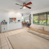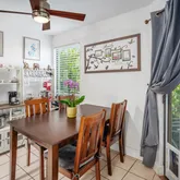 2 beautiful contemporary bathrooms Living room with great natural light and cross breeze Screened-in lanai just off the living room Lanai from the primary bedroom with privacy shades and direct access to the grounds In unit full-size washer and dryer Amenities include Clubhouse with space upstairs for gatherings, pools, BBQ areas, and recycling area.