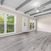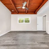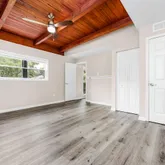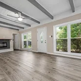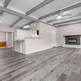 - Interior Features: Ceiling Beamed, Ceiling Cathedral, Ceiling Tray/Cofferd, Fireplace, Floor Laminate