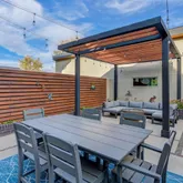 - Room Description: The open floor plan has an indoor/outdoor element with sliding doors to the updated outdoor oasis, a stone fireplace and tons of natural light
