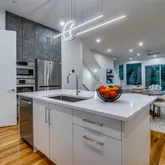 These 3-bedroom, 3.1-bath townhomes range from 2,050 to 2,500 sq. ft., featuring an open floor plan, up to 10-ft ceilings, and large-scale windows for abundant natural light. Interior highlights include solid oak nail-down hardwood floors, premium quartz countertops, custom soft-close cabinetry, and a premium Bosch stainless steel appliance package. Spa like primary suite offers vaulted ceilings and five-fixture baths with double shower heads, backlit mirrors, and designer finishes.