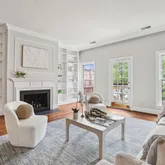 414 3rd Street SE sits at the literal heart of Capitol Hill, just moments from the United States House of Representatives and in the quiet shadow of the Capitol dome. Opportunities like this do not come along often. This distinguished end-unit rowhome offers scale, sunlight, and serious optionality. Live upstairs and lease the lower level. Create a blue-chip investment property. Or reimagine the entire structure as a grand single-family showpiece. The address alone makes the upside compelling. The upper residence blends architectural character with smart, livable flow. The front kitchen opens toward an elevated dining room that feels dramatic without sacrificing connection. Subtle terraced levels define the spaces while preserving openness, creating a layout that feels intentional and elevated. The living room is anchored by a wood-burning fireplace and flanked by floor-to-ceiling built-ins, polished yet inviting. Upstairs, two spacious bedrooms each enjoy en-suite baths. The primary suite overlooks Providence Park through a canopy of mature trees, filling the room with soft afternoon light. The rear suite captures the morning sun. A central hall adds everyday practicality with a dedicated laundry room, linen storage, and neatly organized mechanicals. The ground-level apartment is no afterthought. With nine-foot ceilings, oversized windows, parquet floors, and a full walk-out elevation, the one-bedroom residence is bright, airy, and separately metered. Ideal as a premium rental, private guest suite, or executive office. Outside, a landscaped courtyard creates a welcoming approach and leads to something rarely found on Capitol Hill: a true two-car garage. Location is unmatched. Pennsylvania Avenue is two blocks north. Eastern Market and Barracks Row are three blocks east. Navy Yard is four blocks south. Parks, restaurants, and daily essentials are at your fingertips while you remain tucked into one of the most iconic residential blocks in Washington.