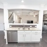 - Interior Features: Ceiling Fan(s), Cathedral Ceiling(s), Ceilings-Some 9 Ft +, Tray Ceiling(s), Attic Stairs Pulldown, Fireplace, Walk-In Closet(s), Soaking Tub, Ceiling - Smooth, Solid Surface Counters, Open Floorplan, Split Bedroom Plan, Coffered Ceiling(s)