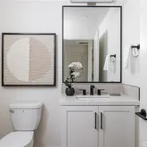 Inside, discover unparalleled sophistication with Bertazzoni appliances, quartz countertops, and counter-to-ceiling backsplash in the primary bathrooms, accentuated by vanity sconces for added elegance. Enjoy the airy ambiance created by close-to-10' ceilings as you relax in either of the ensuite bedrooms, with each primary bath featuring a frameless glass shower and a generously sized walk-in closet.